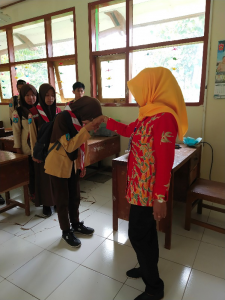 Foto Kegiatan Pembelajaran PPKn di diakhiri dengan jabat tangan pada jam pembelajaran terakhir
